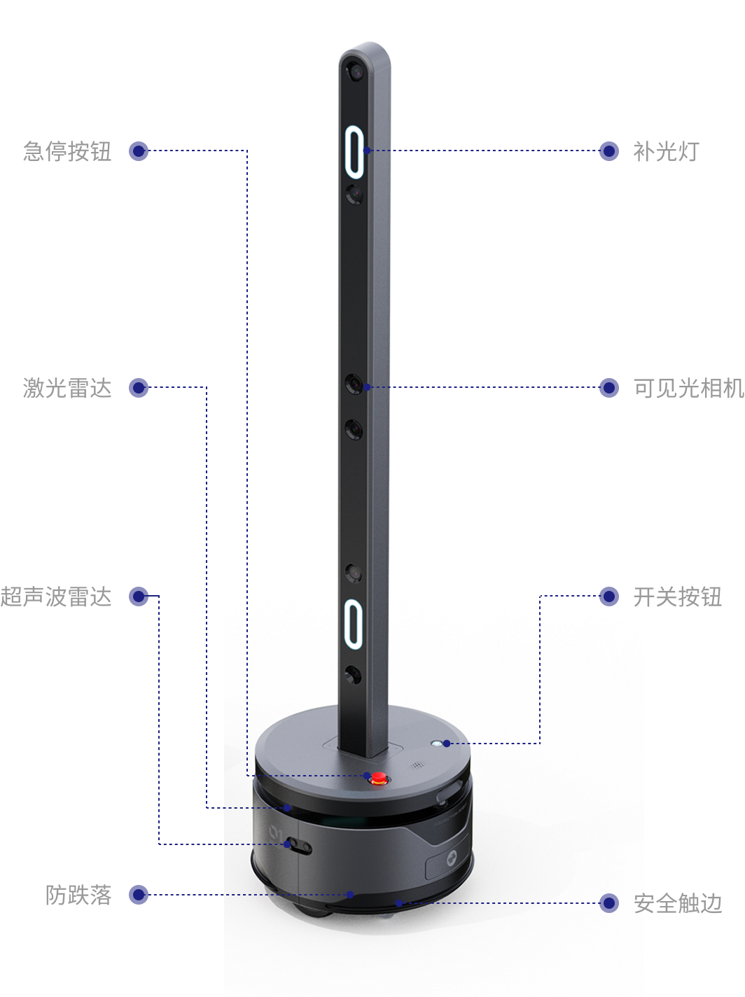 支持自主寻桩充电,具备过压/过温/过充等多重保护,实现无人化充电管理与状态监控